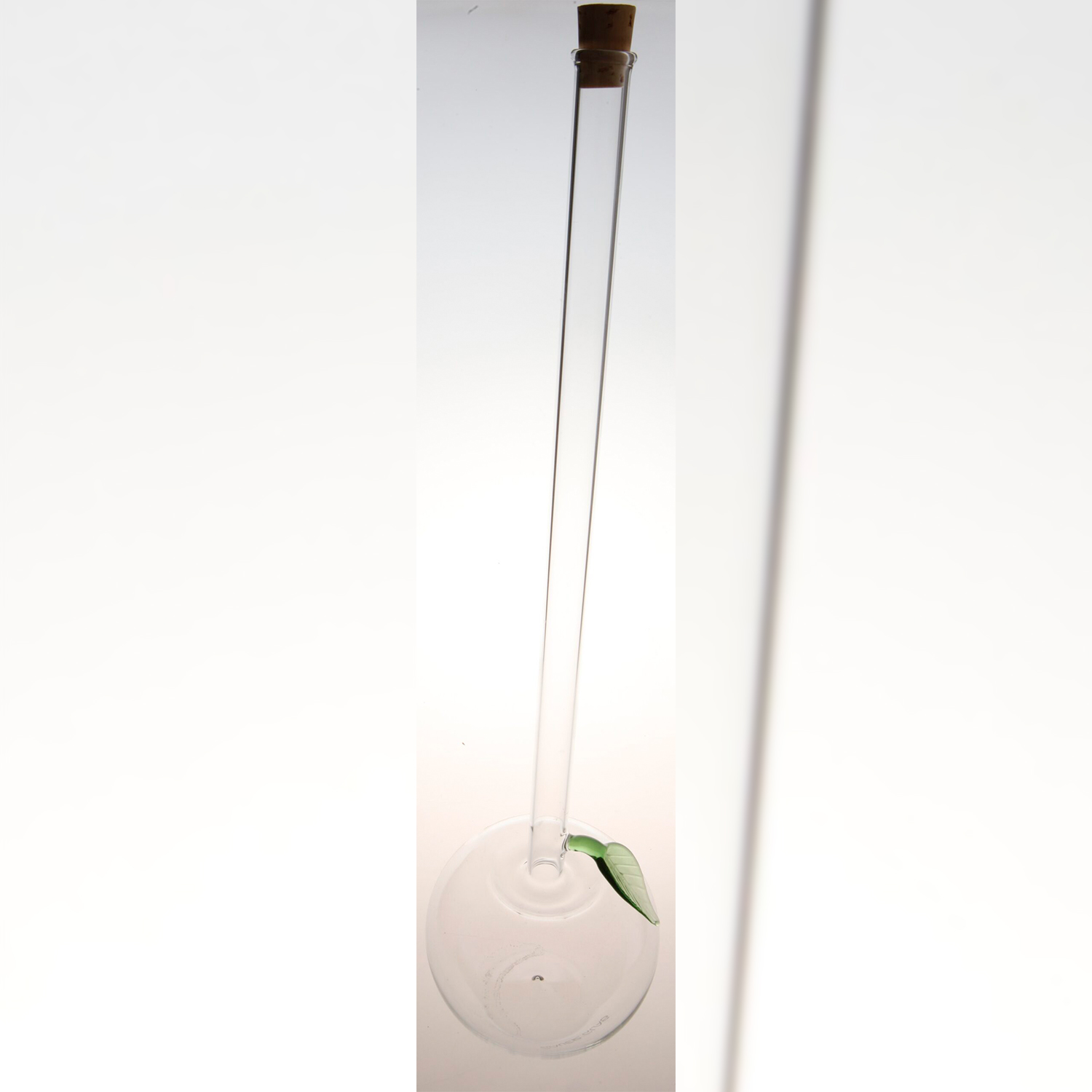Die apfelförmige Flasche besticht durch den langen eleganten Hals.