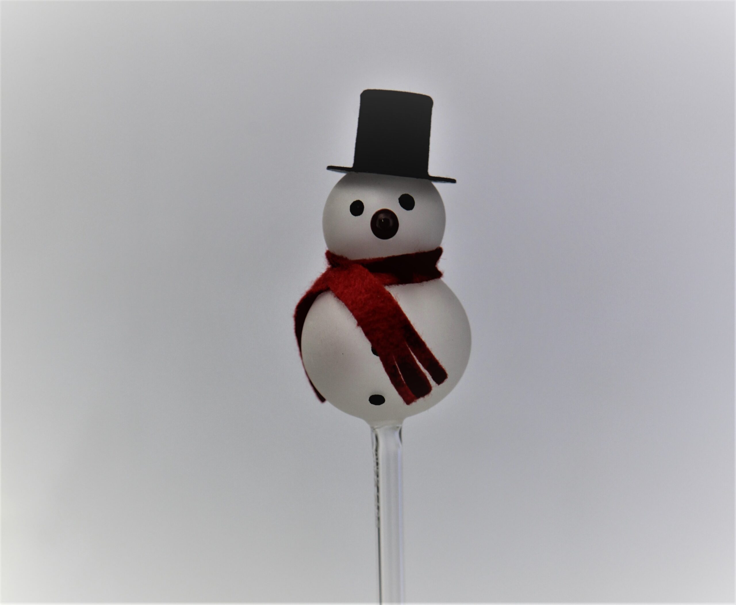 Hübscher Schneemann als weihnachtlicher Blumenstecker.