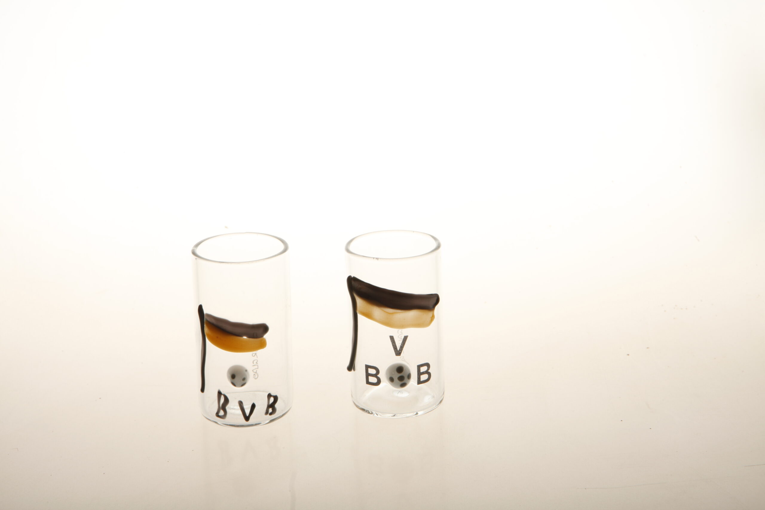 Tolles Schnapsglas mit Fußballfahne des Lieblingsvereins .
