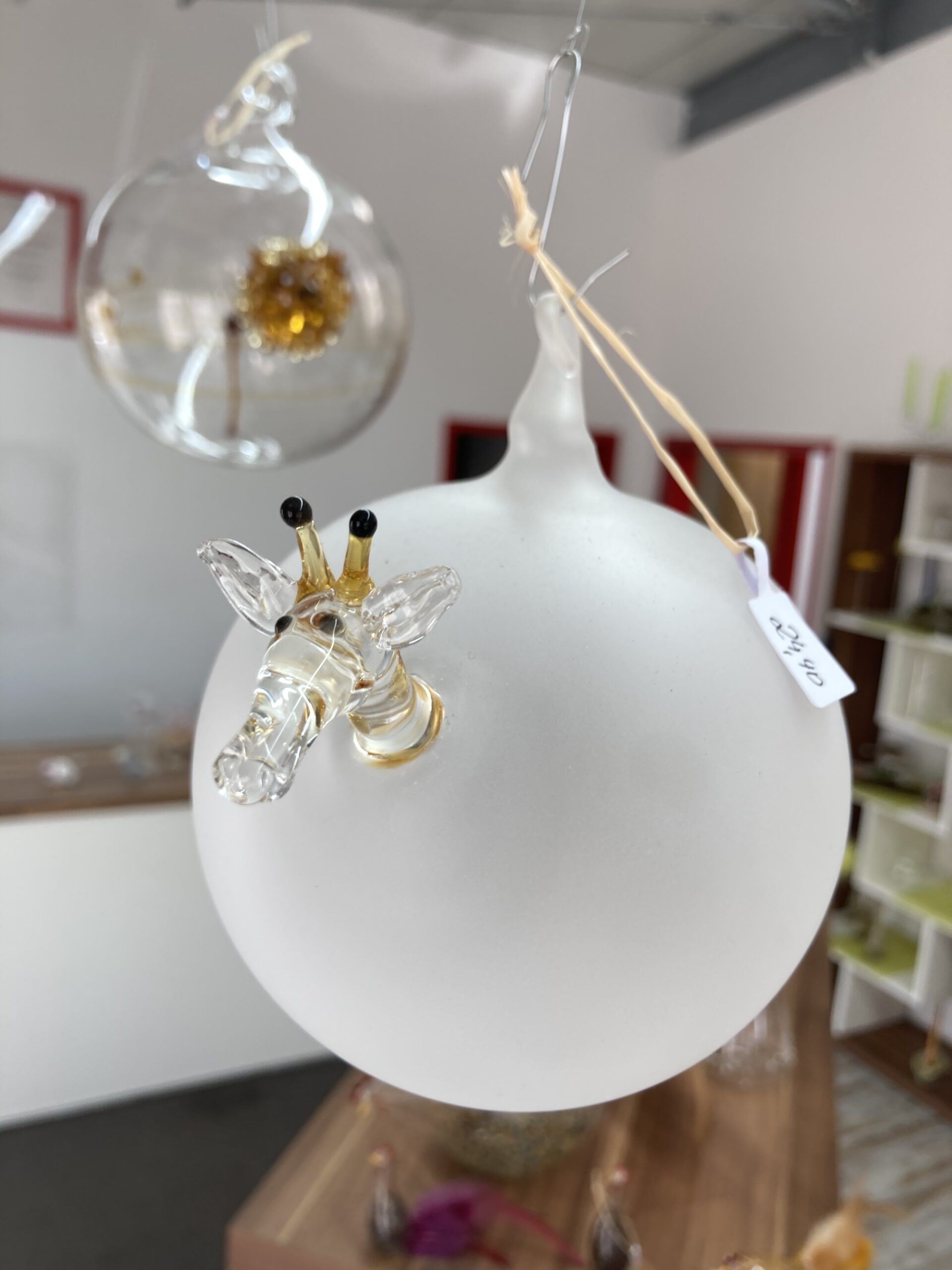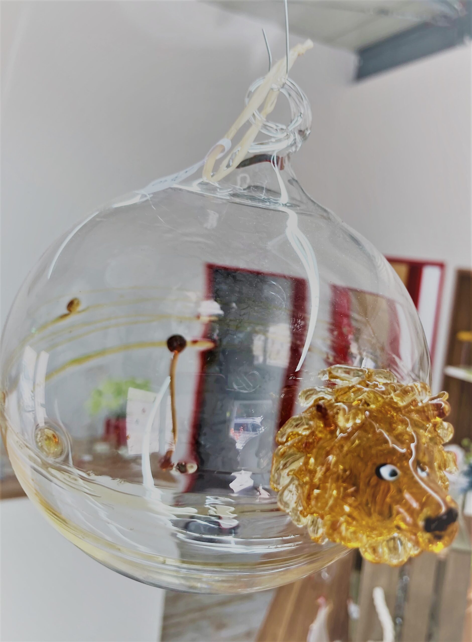 Originelle Kugel mit Tierkopf und Schwanz.