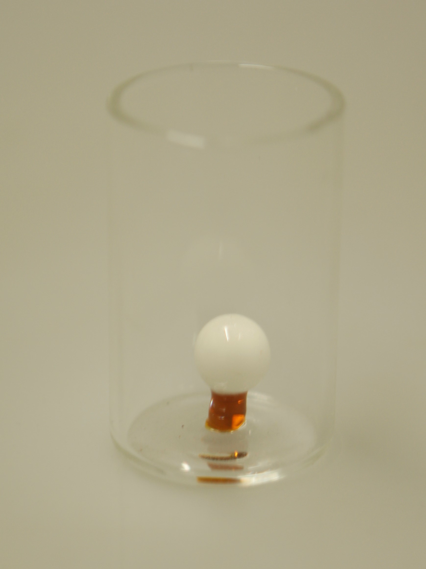 Im Glas ist innen ein kleiner Golfball eingearbeitet.