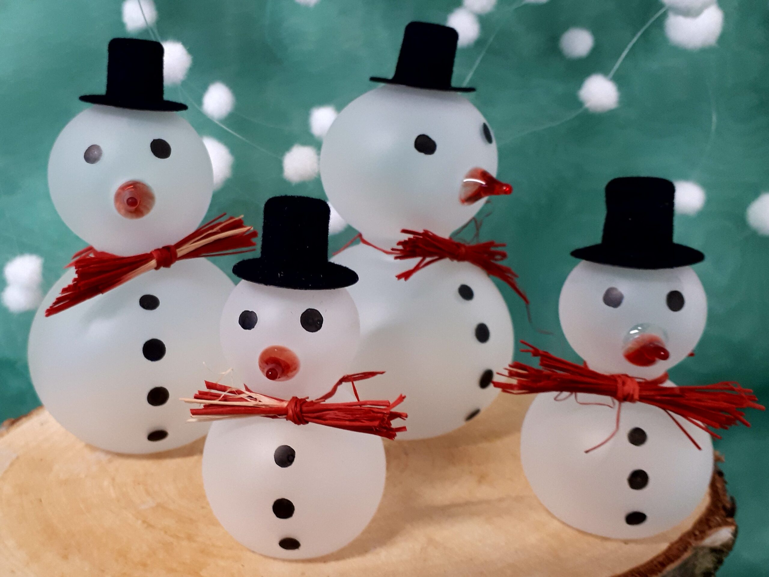 Die Schneemänner mit Filzschal, Zylinder und roter Nase gibt es in 4 Größen